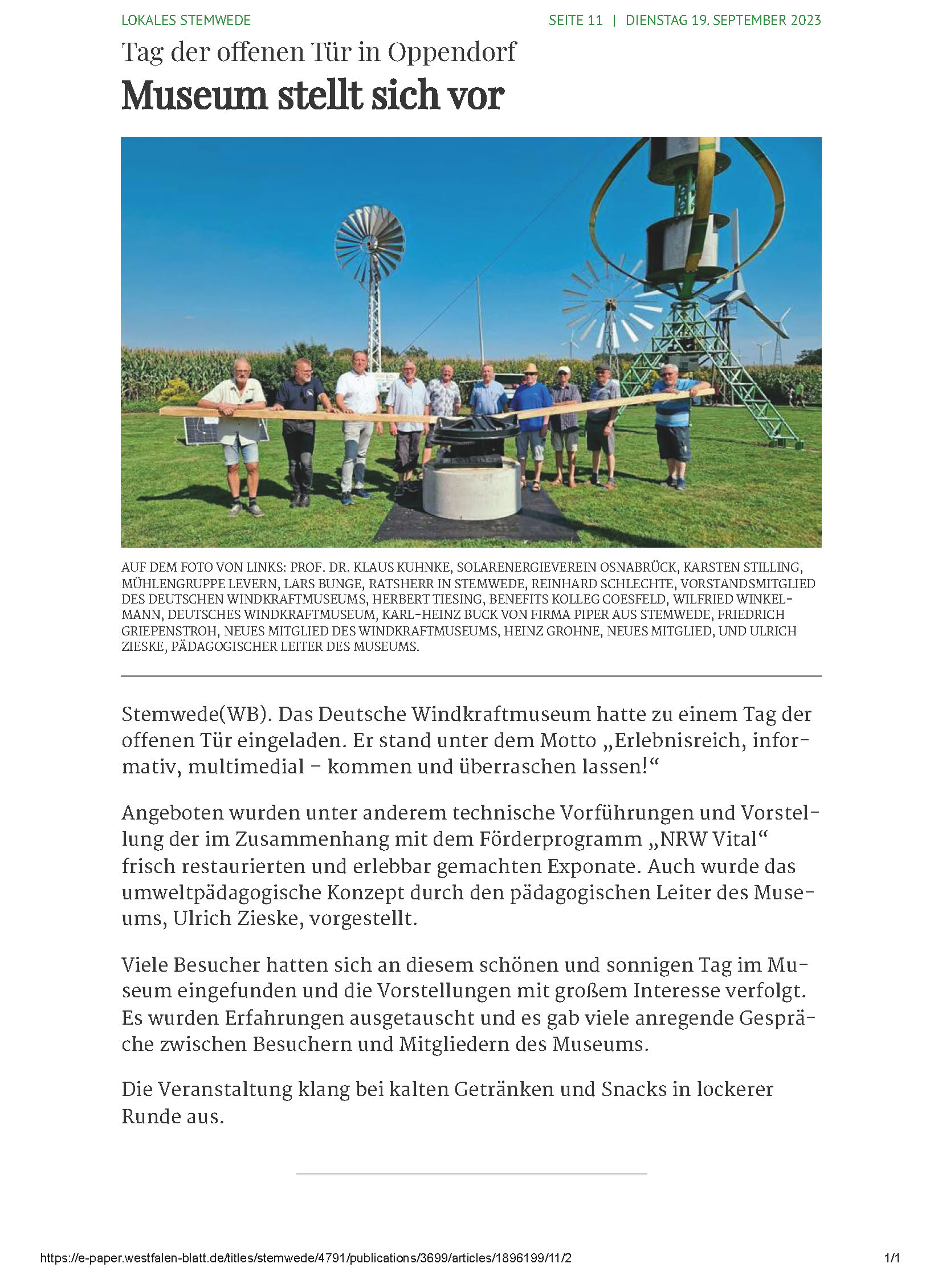 On April 27, 2024, the German Wind Power Museum in Stemwede-Oppendorf hosted the so-called “Renewable Energy Day.” The reason for this is that this day commemorates the Chernobyl nuclear disaster. Numerous events related to this topic are taking place throughout Germany, including at the German Wind Power Museum. The museum is supported by a non-profit association, which, as every year, organized several speakers who provided an informative supporting program with their specialist presentations.
