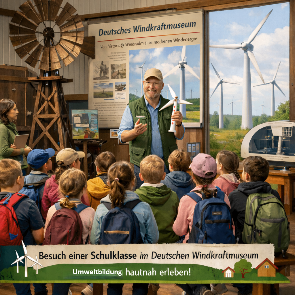 Energie erleben beim JuKi-Tag 2026! Das Deutsches Windkraftmuseum ist beim JuKi-Tag am 7. März 2026 dabei – und DU kannst selbst zum Energie-Profi werden! An unserem Mitmach-Stand warten spannende Experimente rund um Wind, Sonne und Muskelkraft auf dich. Mit echten Solarmodulen, kleinen Windrädern, Handkurbeln und coolen Messgeräten findest du heraus: 🔆 Wie wird aus Sonnenlicht […]